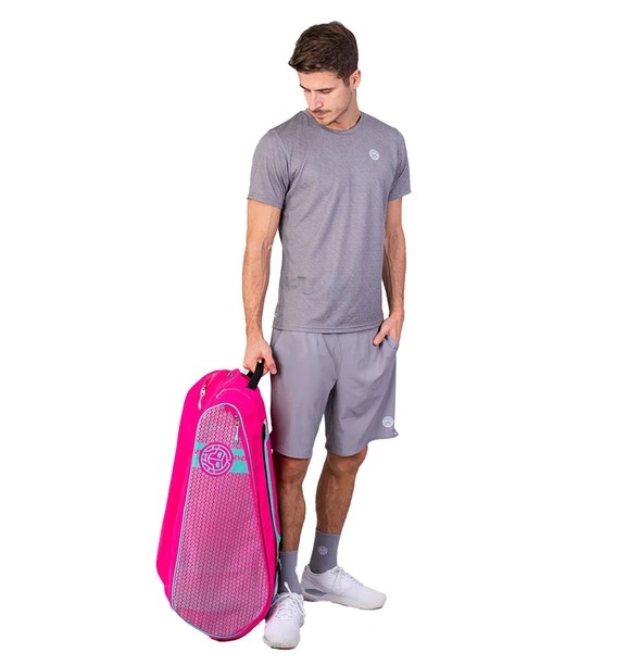 Чехол оснащен боковым отделением из плотного материала с вставкой из жесткой пластины, которая обладает противоударными свойствами и позволяет хранить в сумке как хрупкие вещи, так и теннисные принадлежности. Также есть боковой карман для мелких аксессуаров, один прозрачный вентилируемый карман для обуви и ручка в центральной части для переноски.
