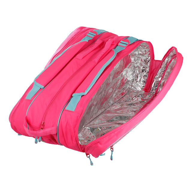 Чехол Reckeny вмещает до 12 теннисных ракеток. Оснащен эргономичными и съемными наплечными ремнями для переноски сумки в виде рюкзака или наплечной сумки. Специальный термоизолированный отсек для ракеток, сделанный из прочной, но в тоже время легкой ткани, не пропускает влагу и позволяют струнам сохранять первоначальное натяжение на протяжении более продолжительного периода времени.