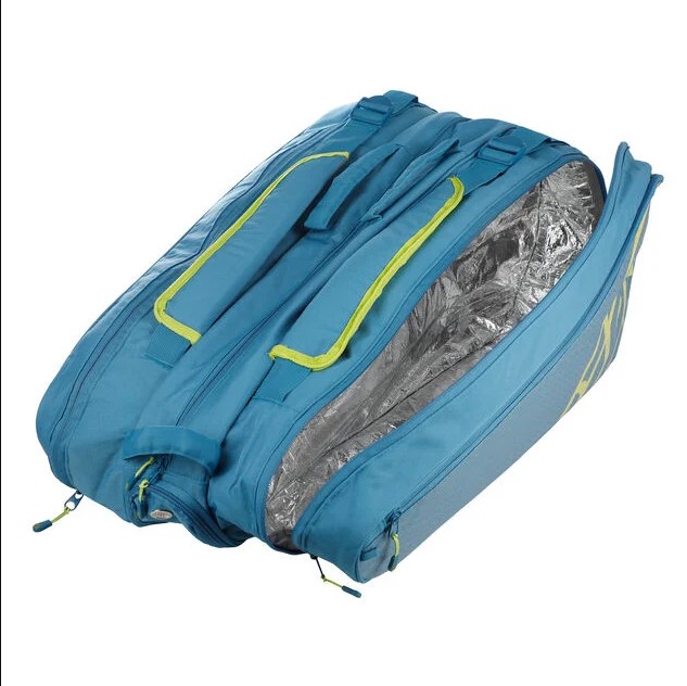 Чехол Reckeny вмещает до 12 теннисных ракеток. Оснащен эргономичными и съемными наплечными ремнями для переноски сумки в виде рюкзака или наплечной сумки. Специальный термоизолированный отсек для ракеток, сделанный из прочной, но в тоже время легкой ткани, не пропускает влагу и позволяют струнам сохранять первоначальное натяжение на протяжении более продолжительного периода времени.