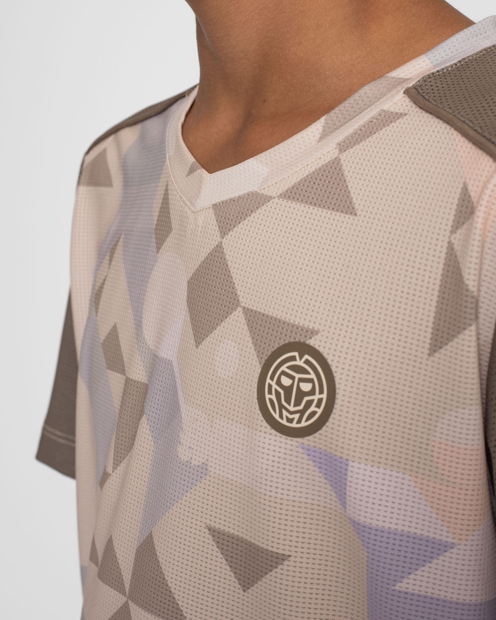Сочетание прямого и тонкого кроя, а также V-образного выреза спереди обеспечивает необходимый комфорт при ношении футболки и свободу в области плеч. Легкий непрозрачный материал вкупе с небольшими вентиляционными отверстиями позволяет отлично отводить влагу и сохранять сухость даже при интенсивной игре. Удлиненная спинка