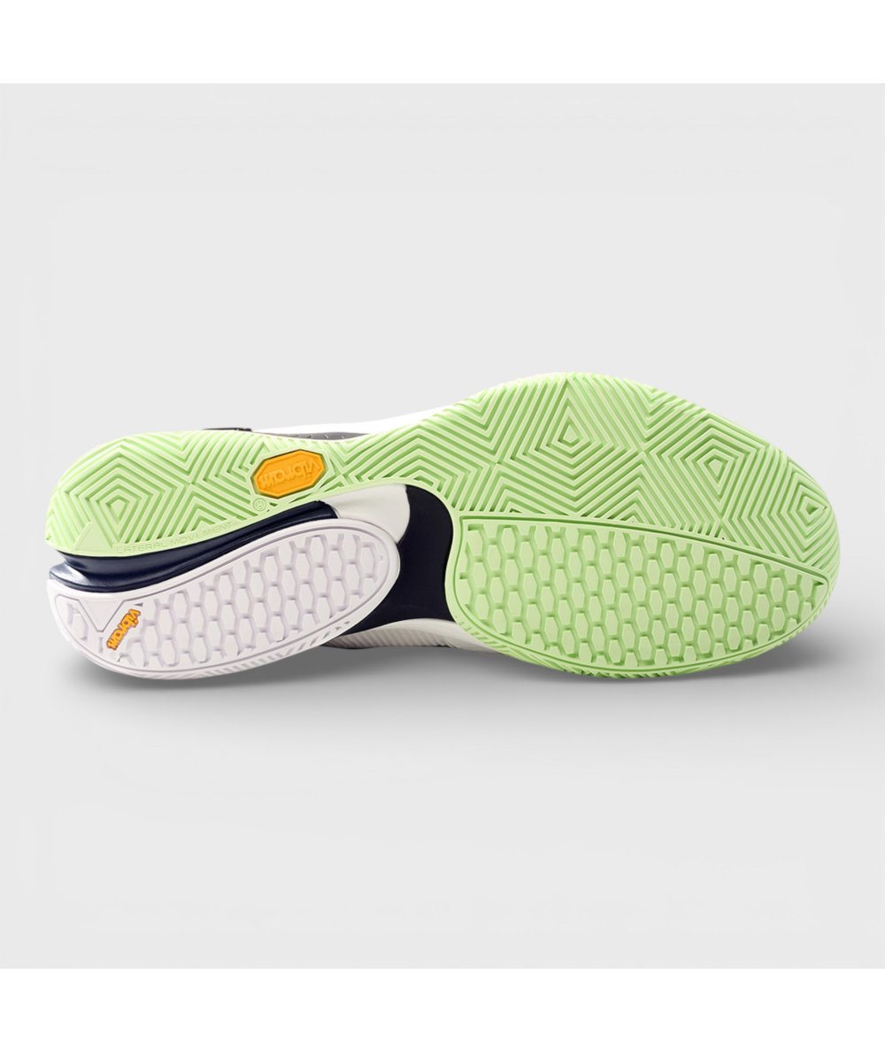 Технология Vibram как и прежде повышает износостойкость и дает отличное сцепление с покрытием. Подошва двойной плотности разработана специально для игры в падел (2 Dens) и имеет двойной протектор (технология Hybrid 360). С одной стороны, протектор представлен виде елочки, что позволяет достичь идеального сцепления с покрытием, не позволяя обуви проскальзывать. Другая, напротив, пупырчатая – обеспечивает устойчивость и необходимое сцепление при резких боковых движениях и возвращениях в исходное положение. Верх обуви изготовлен из специального тканного материала в виде сеточки, которая предотвращает попадание песка внутрь и обеспечивает отличную воздухопроницаемость.
