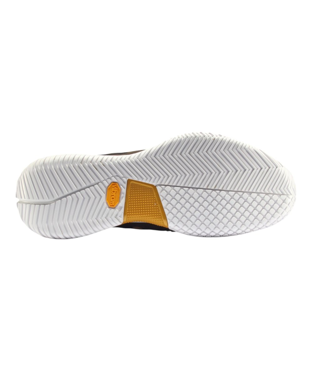 Подошва разработана специально для игры в падел (технология Vibram) и имеет двойной протектор (Hybrid 360). С одной стороны, протектор представлен виде елочки, что позволяет достичь идеального сцепления с покрытием, не позволяя обуви проскальзывать. Другая, напротив, пупырчатая – обеспечивает устойчивость и необходимое сцепление при резких боковых движениях и возвращениях в исходное положение.