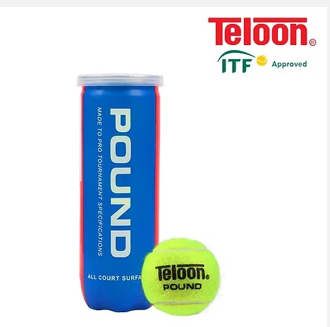 Teloon Pound – это мяч под давлением в пластиковой банке от китайского производителя Teloon. Сделан из тканного войлочного материала и обладает хорошим уровнем прочности. Может использоваться на любых покрытиях (грунт, трава, хард, терафлекс).