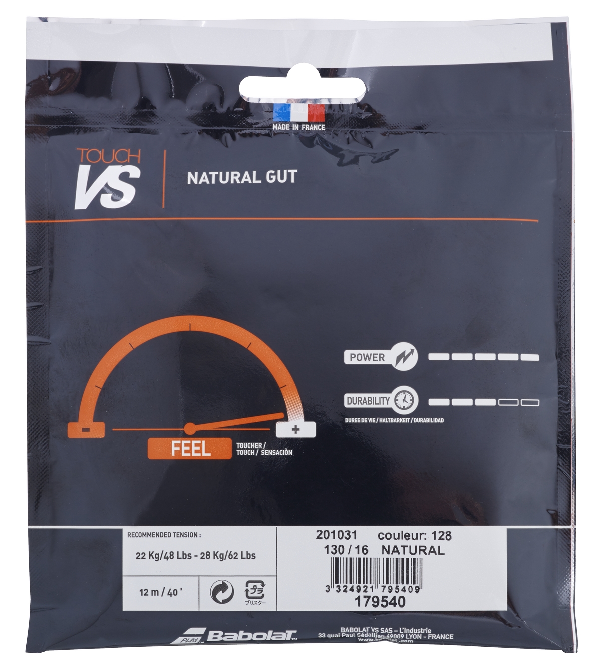 Натуральные струны Touch VS производятся на заводе Babolat во Франции и являются гарантией высочайшего качества.