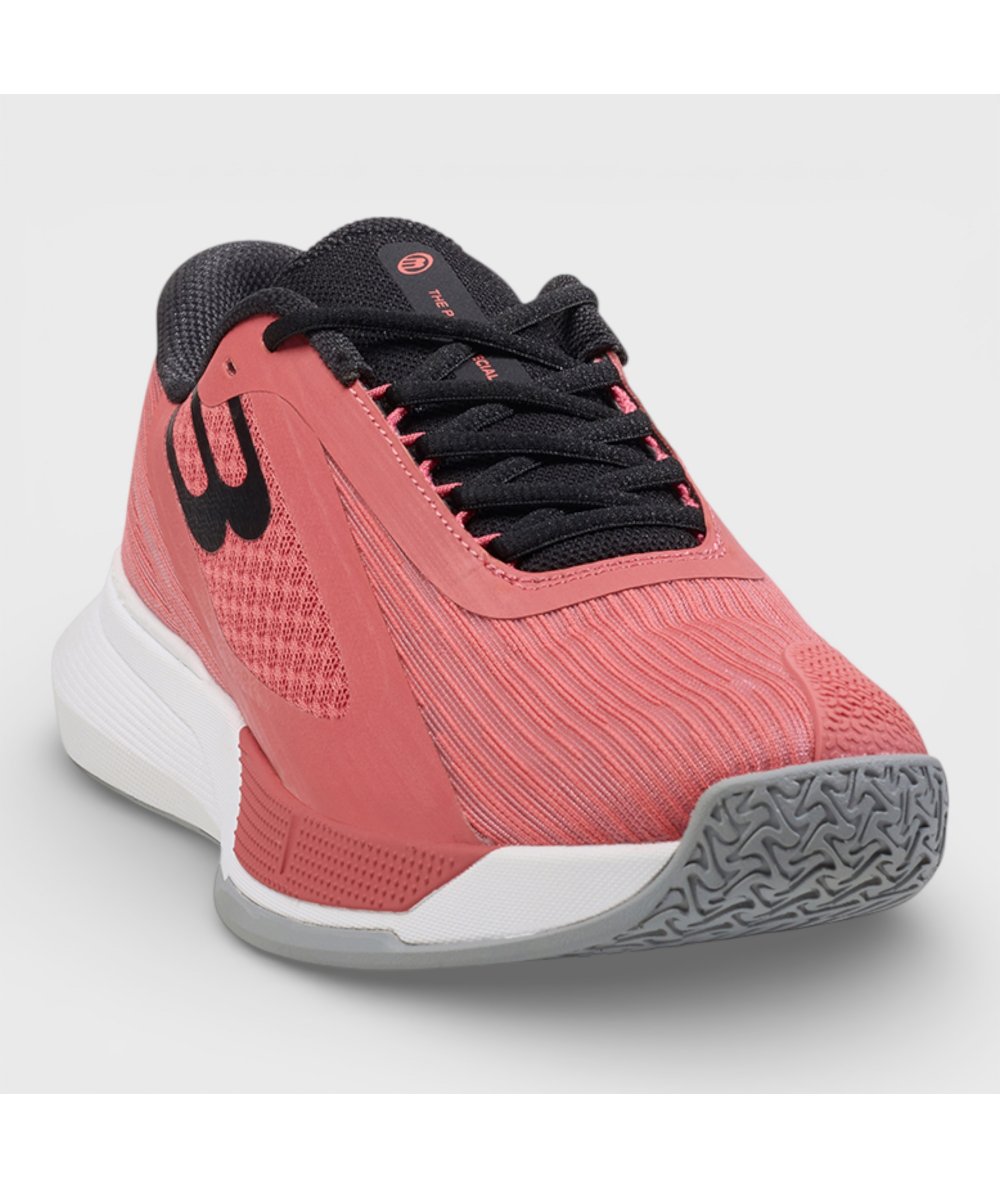 Подошва разработана специально для игры в падел и имеет гибридный протектор. С одной стороны, протектор представлен в виде модернизированной елочки, что позволяет достичь идеального сцепления с покрытием, не позволяя обуви проскальзывать. Другая, напротив, в виде линий и встроенного диска (rotox) – обеспечивает устойчивость и необходимое сцепление при резких боковых движениях и возвращениях в исходное положение.