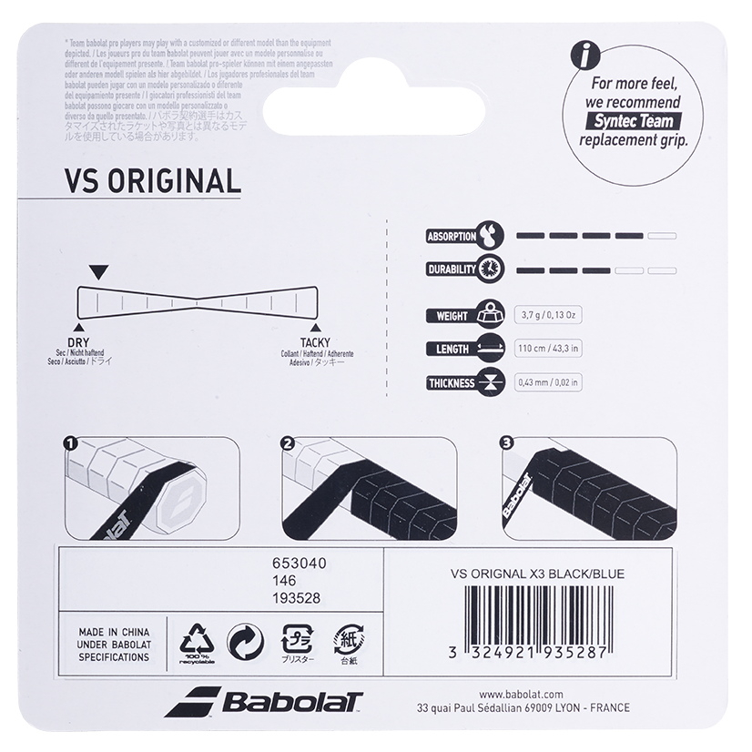 Намотка VS Original может быть рекомендована широкому спектру игроков- начиная от детей и юниоров и до профессиональных игроков.