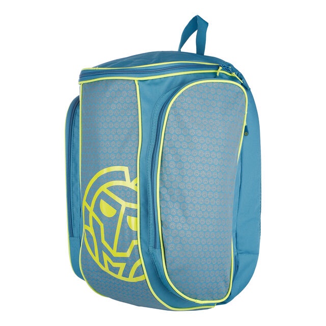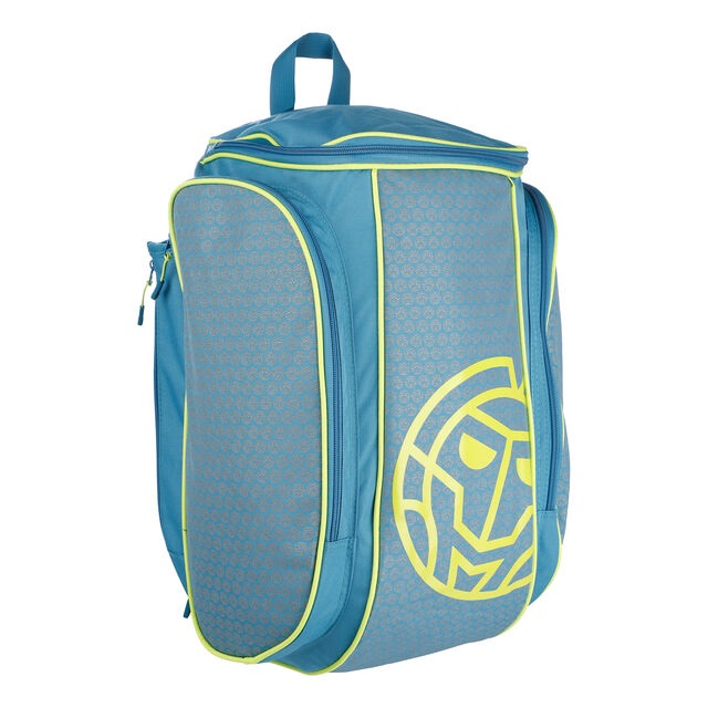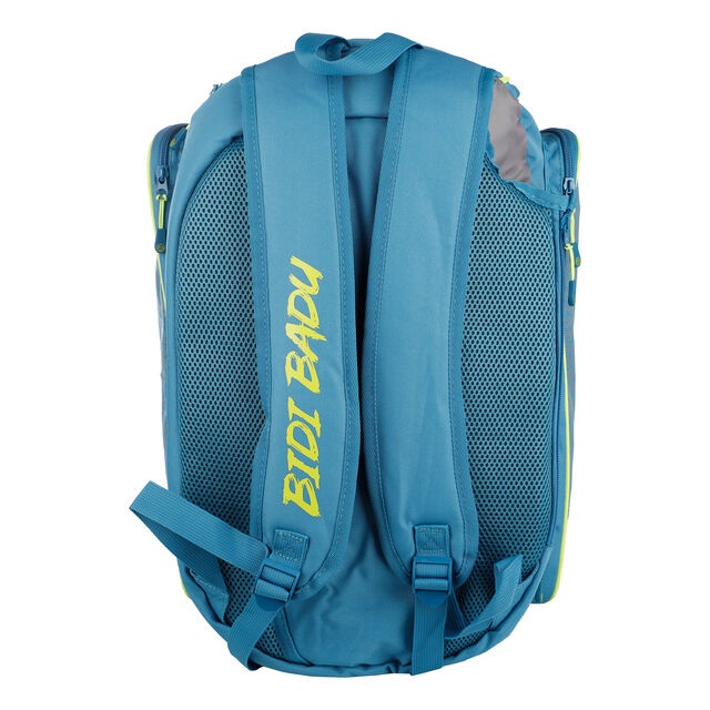 По обеим сторонам рюкзака имеются боковые отделы на молнии из плотного материала, предназначенные для хранения теннисных аксессуаров и хрупких вещей. Для дополнительного комфорта в задней части рюкзака расположена мягкая подкладка и регулируемые мягкие наплечные ремни. Также сверху есть ручка для переноски.