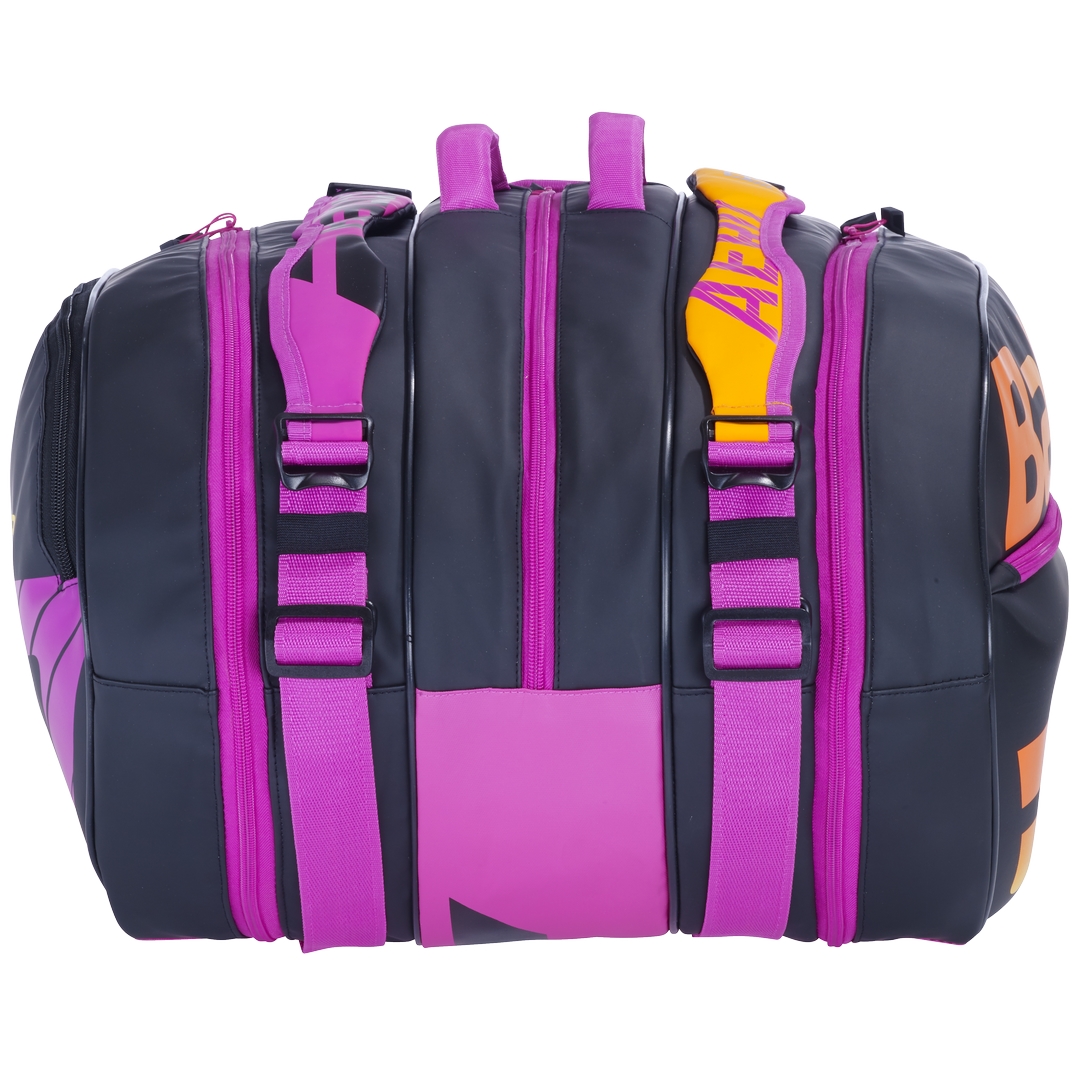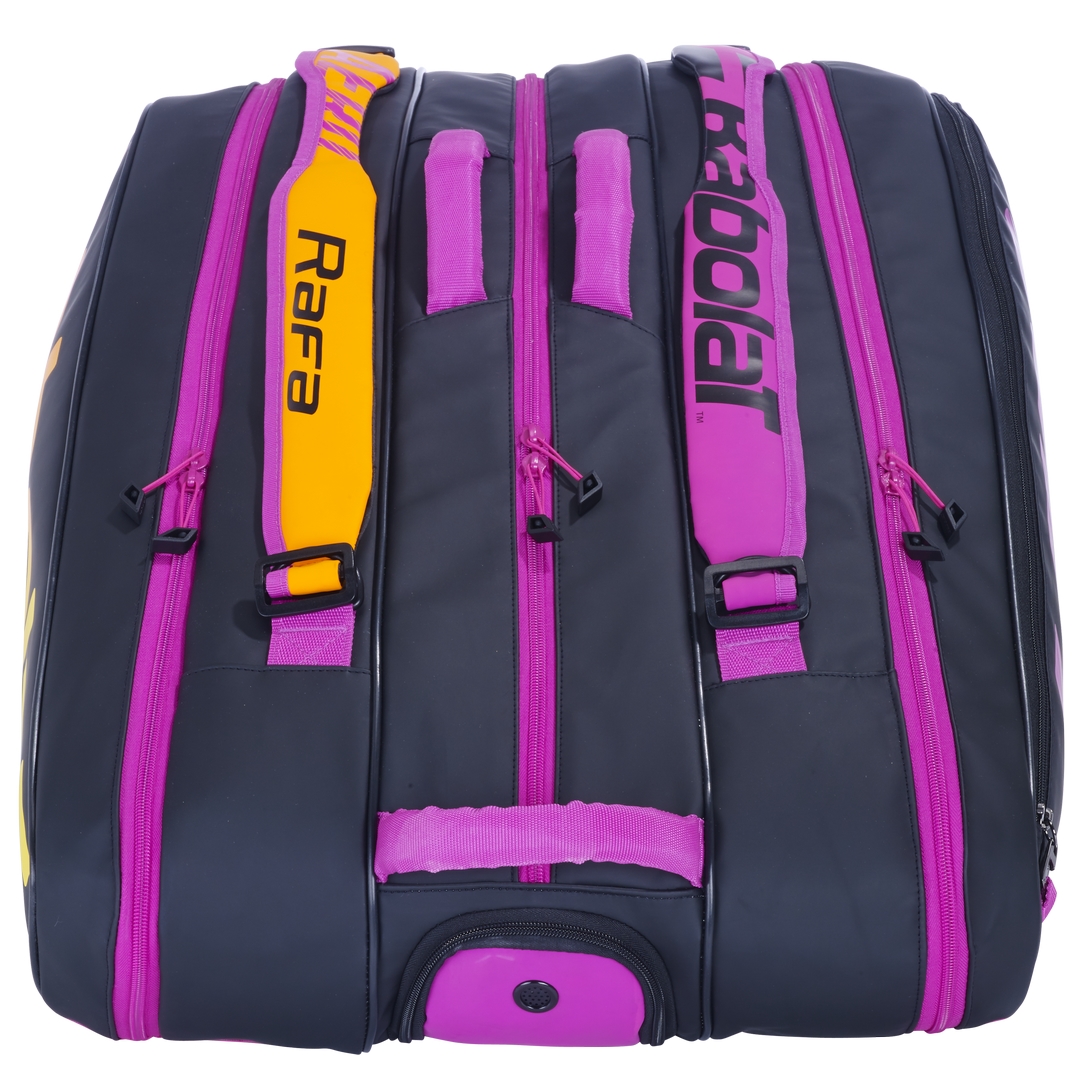 Теннисная сумка Pure Aero Rafa посвящена уникальной серии Pure Aero Rafa и выполнена в ярких розово-оранжевых тонах с добавлением желтого и темного цвета, которые символизируют лучшие качества Рафаэля Надаля: целеустремленность, настойчивость и скромность.