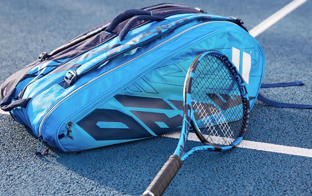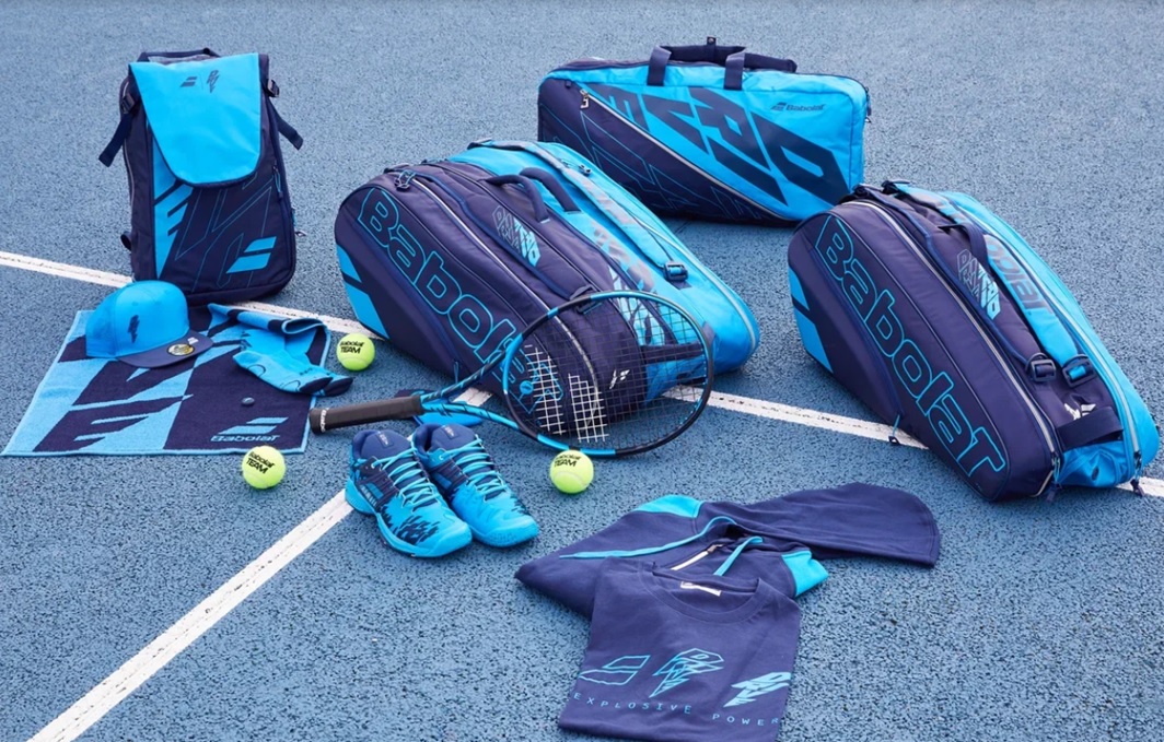 Теннисная сумка выполнена в ярком синем дизайне, посвященном серии ракеток Pure Drive.