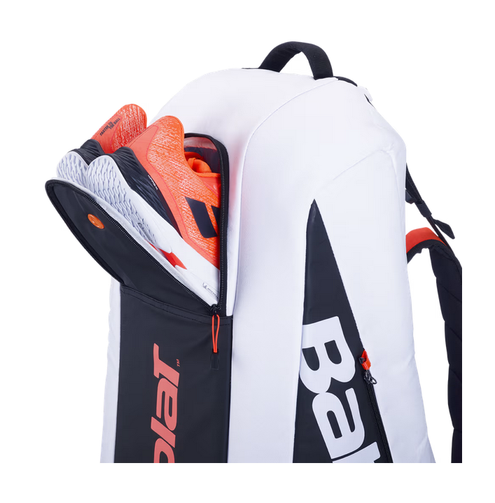 Также в сумке есть боковое отделение из плотного материала для хранения хрупких принадлежностей, карман для теннисных аксессуаров и прозрачный вентилируемый карман для обуви. Внешне сумка облицована новым водонепроницаемым материалом, гарантирующим дополнительную защиту, и оснащена специальным замком, который фиксирует положение молнии бокового отделения в нужном вам положении. Оригинальные надписи "Strike" внутри и снаружи сумки.
